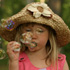 Dyp hænderne ned i boblemiksen. Form en cirkel med tommel- og pegefinger, som vist på billedet. Tag hænderne op og pust langsomt og jævnt. Før hænderne stille sammen for at lukke boblen.