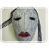 | Mal masken i den ønskede farve. Skær huller til øjnene. Her kan man bruge en spids brødkniv med savtakker. Sikkerhed er her en selvfølge! Vi skal lave en "teaterdame", så vi har malet læbestift og eyeliner. | |